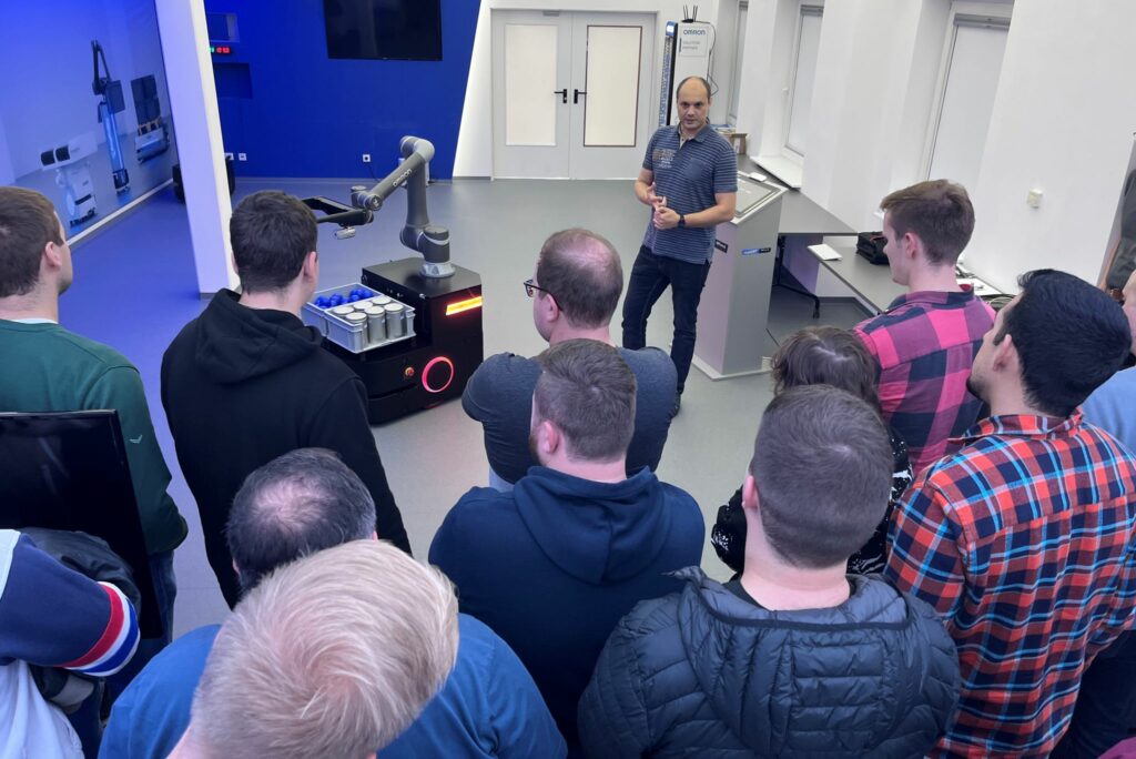 Die Überreichung der Zertifikate fand gestern im Zuge einer Betriebsbesichtigung bei EngRoTec in Hünfeld statt. Im Showroom der EngRoTec Solutions erlebten die angehenden Techniker eine durch Sascha Beck (Team Leader Hardware & Software Development) geleitete live Vorführung zu den Themen industrielle Bildverarbeitung und der autonomen, mobilen Robotik (AMR). Nach dem offiziellen Teil der Zertifikatsübergabe konnten die Besucher einen praktischen Einblick in die Teams „Automation & Robotik“ sowie „Engineering“ erhalten. Mitarbeiter zeigten an aktuellen Projekten die konkreten Aufgaben und Inhalte des Tagesgeschäfts. Fragen zu den Themen konnten aus erster Hand beantwortet und bei einer Tasse Kaffee im Anschluss an die Veranstaltung vertieft werden. Vielen Dank an alle Beteiligten für die gelungene und informative Veranstaltung!